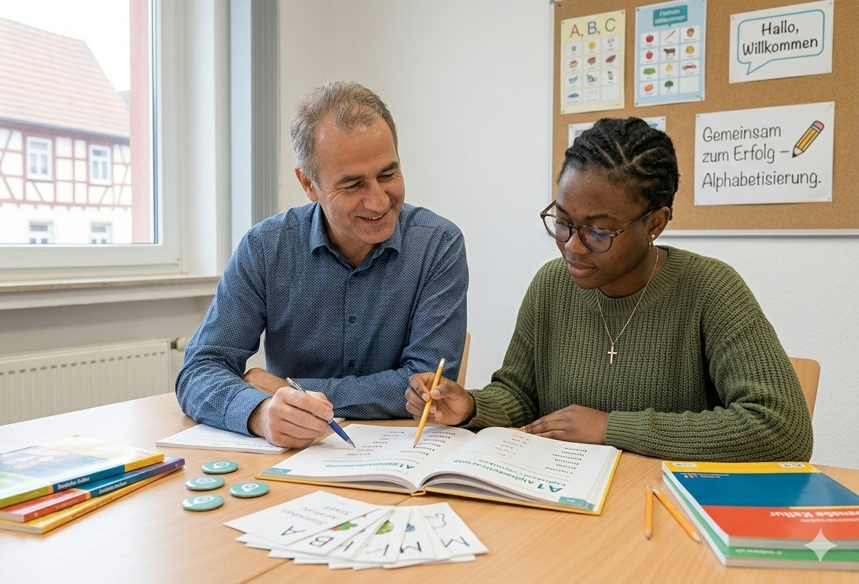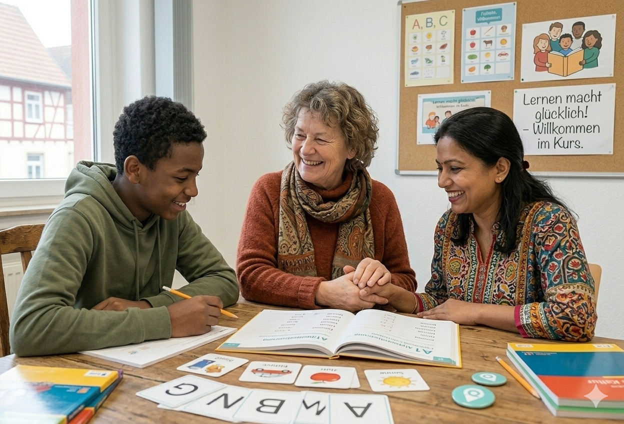 Wir unterstützen Sie gemeinsam mit unseren Partnern durch maßgeschneiderte Deutschkurse, von der Alphabetisierung bis zum Berufseinstieg. Gemeinsam ebnen wir den Weg für Ihre gelungene Integration.